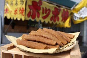 黒砂糖と小麦粉を混ぜて細長く焼き上げたお菓子で、黒砂糖の風味とモチモチとした食感がやみつきになるそうです。